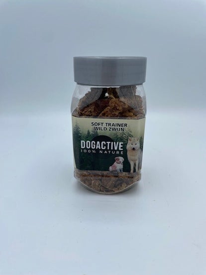 Heerlijke zachte vleestrainertjes, ideaal voor het trainen of gewoon als tussendoortje. Wordt geleverd in een handig afsluitbaar containertje. 99% wild zwijn 1% glycerine