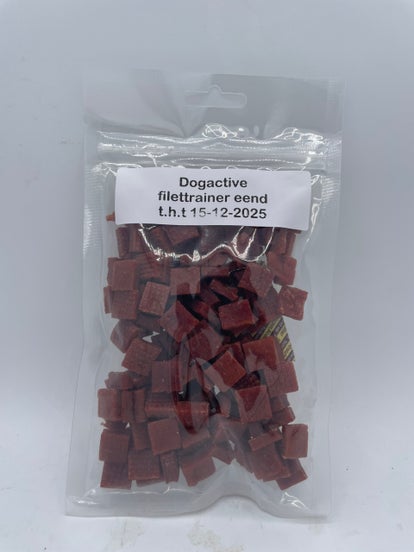 Heerlijke zachte vleestrainertjes, ideaal voor het trainen of gewoon als tussendoortje. Wordt geleverd in een handig afsluitbaar containertje. 99% eend 1% glycerine